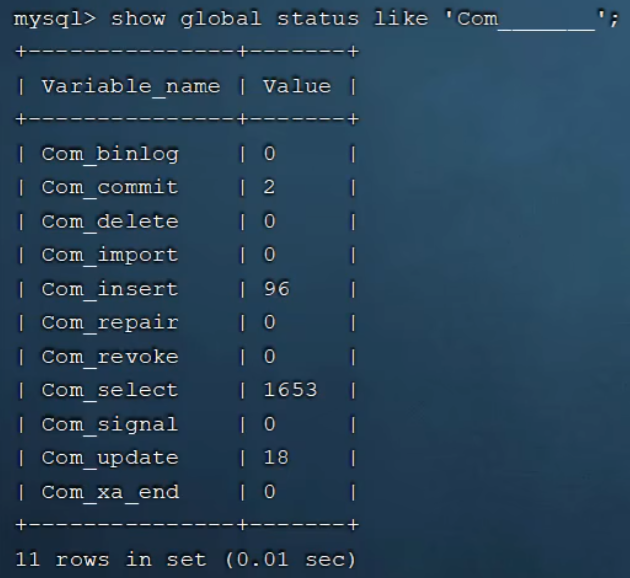 show gobal status like 'Com_______'